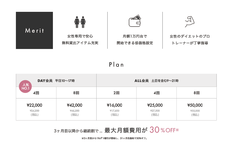 また、UNDEUX SUPERBODY藤沢店は「月額制」を採用します。月4回(*1)のパーソナルトレーニング(栄養指導込み)が月額24,000円です。パーソナルジムの品質は一切落とさず、低価格を実現しました。