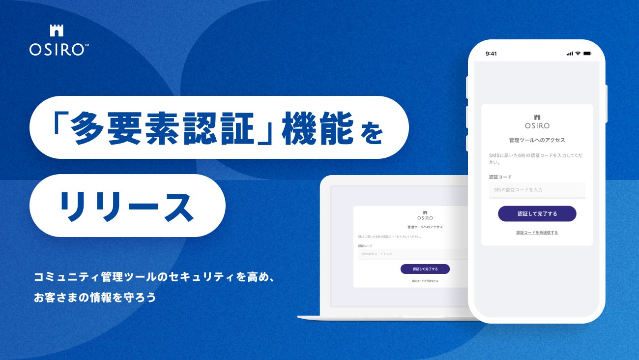 コミュニティ専用オウンドプラットフォーム「OSIRO」を提供するオシロ株式会社(本社:東京都渋谷区、代表取締役社長:杉山 博一、以下 当社)は、OSIROをご利用いただいているお客さま情報の安全性を高めるため、SMS認証による「多要素認証」の機能を新たにリリースしました。情報セキュリティ体制を強化することにより、お客さまにより一層安心して当社のサービスをご利用いただけるようになりました。