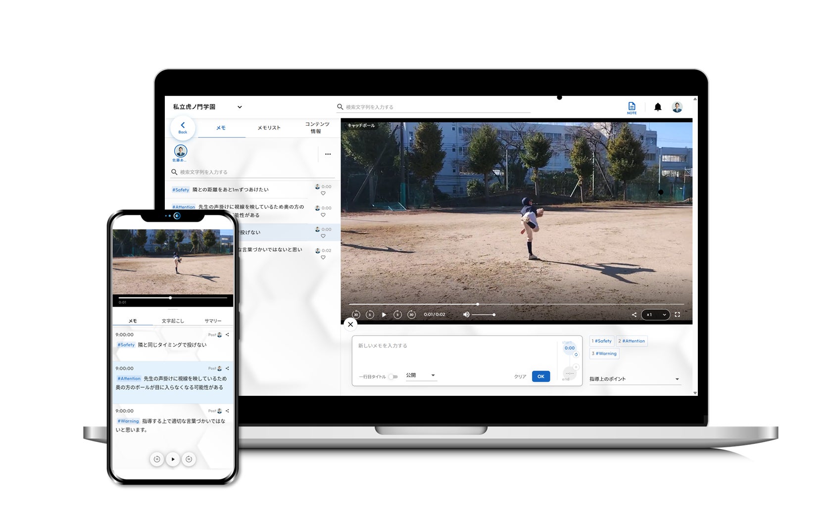 指導風景を撮影し、専門家が客観的に分析し、生徒の安全性と安心性を担保