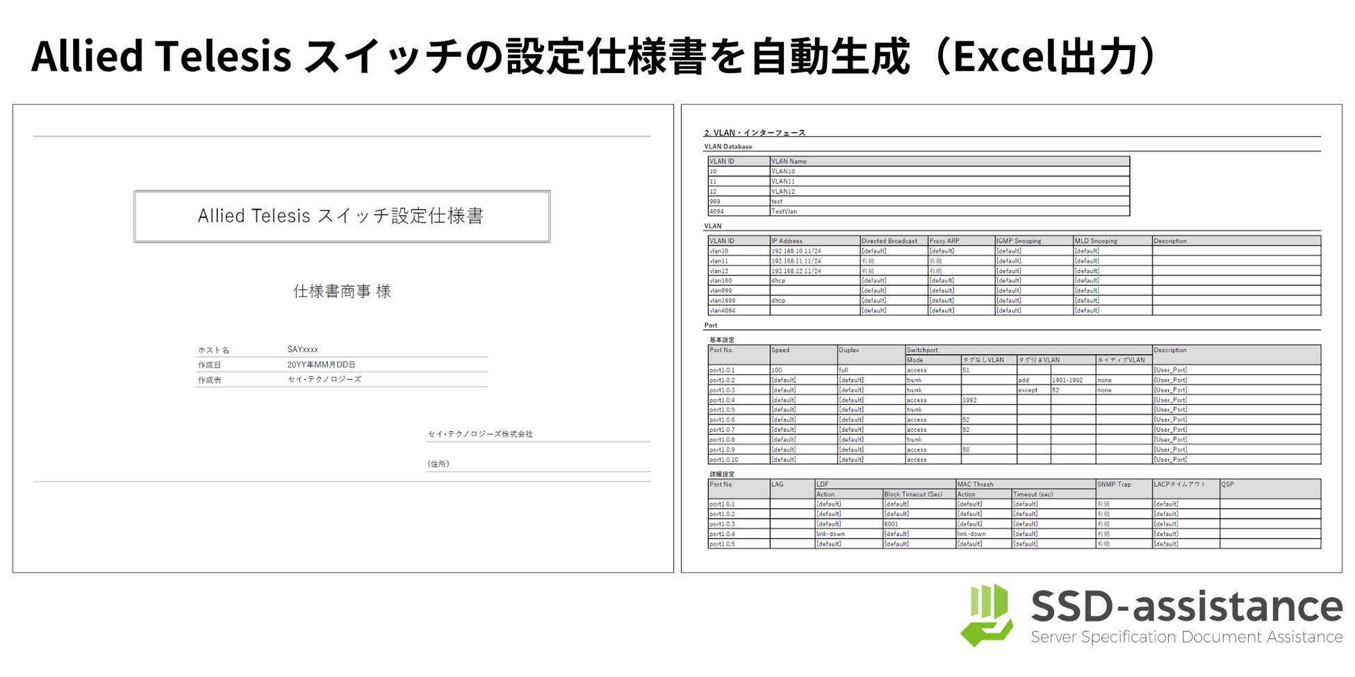 ▶ 「Allied Telesis スイッチ設定仕様書」のサンプルを含む SSD-assistance がすぐにわかる資料 3 点セットはこちらからダウンロードできます。