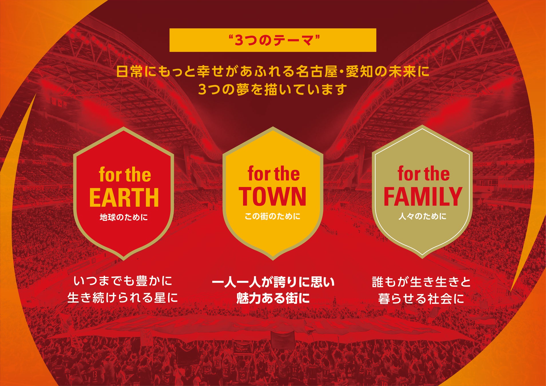 これまで名古屋グランパスが行ってきたホームタウン活動をベースに、「地球」「街」「人々」を3つのテーマとして定め、活動していきます。