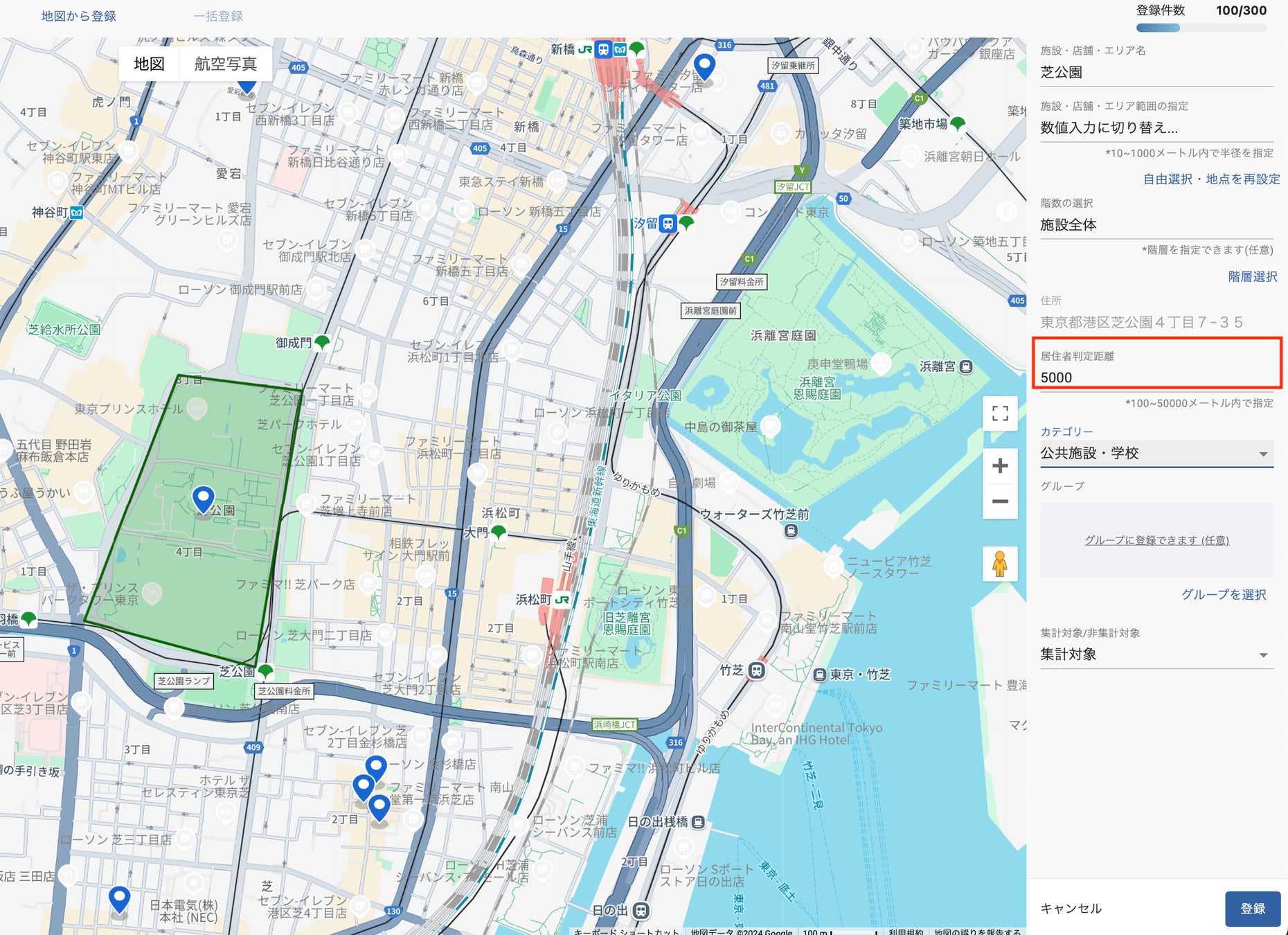 居住者/勤務者/来街者 判定距離の個別設定機能とは