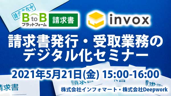 請求処理自動化サービス「invox(https://invox.jp)」を運営する株式会社invox(本社:東京都新宿区、代表取締役社長:横井 朗)は、株式会社インフォマート(本社:東京都港区、代表取締役社長:長尾 收)が主催する日本働き方会議のセミナー「請求書発行・受取業務のデジタル化セミナー(https://jwc-kaikaku.jp/course/infomart/info001.html)」に登壇します。