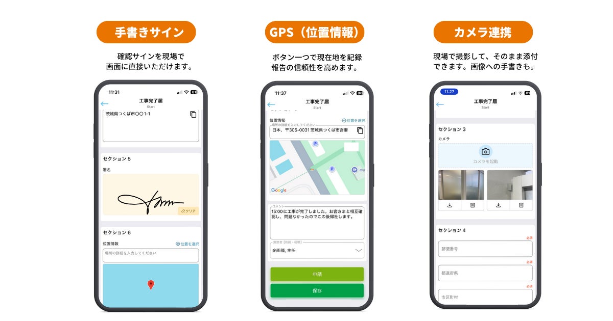 テキスト・日付・写真・位置情報など、現場利用を前提とした入力パーツを拡充。