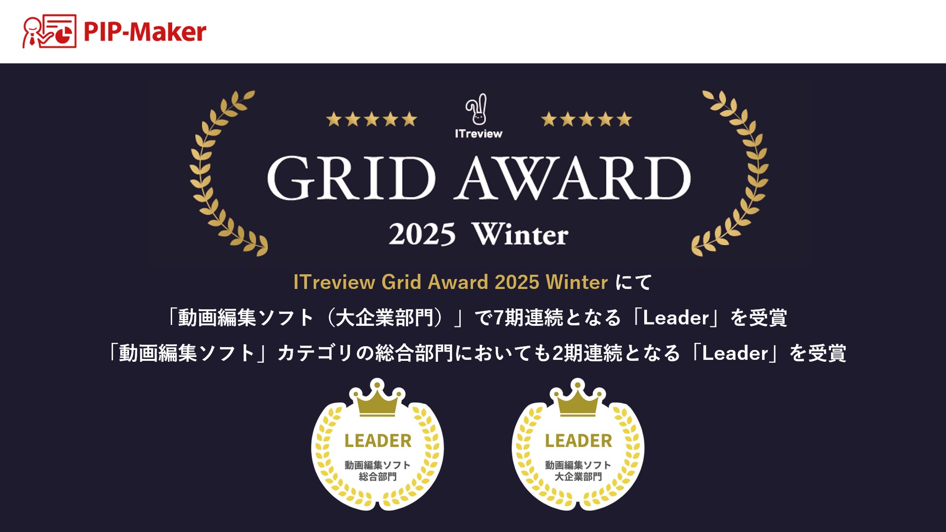 『PIP-Maker』、ITreview Grid Award 2025 Winterの「動画編集ソフト(大企業部門)」で7期連続となる『Leader』を受賞。