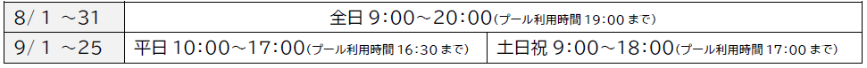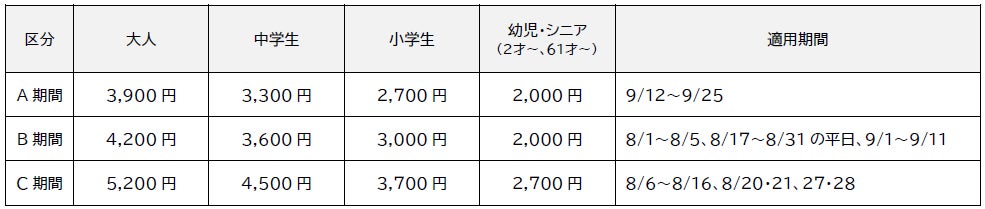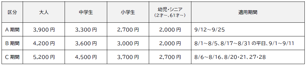 - 東京サマーランド営業概要(8月1日~9月25日)