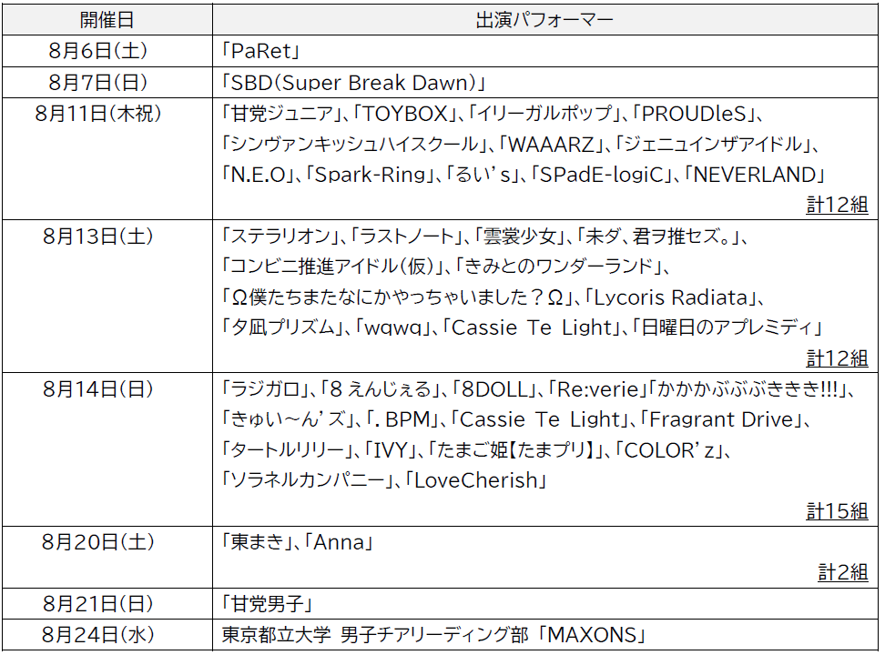 ※各開催日におけるタイムテーブルは東京サマーランド公式HP(https://www.summerland.co.jp/)をご確認下さい。