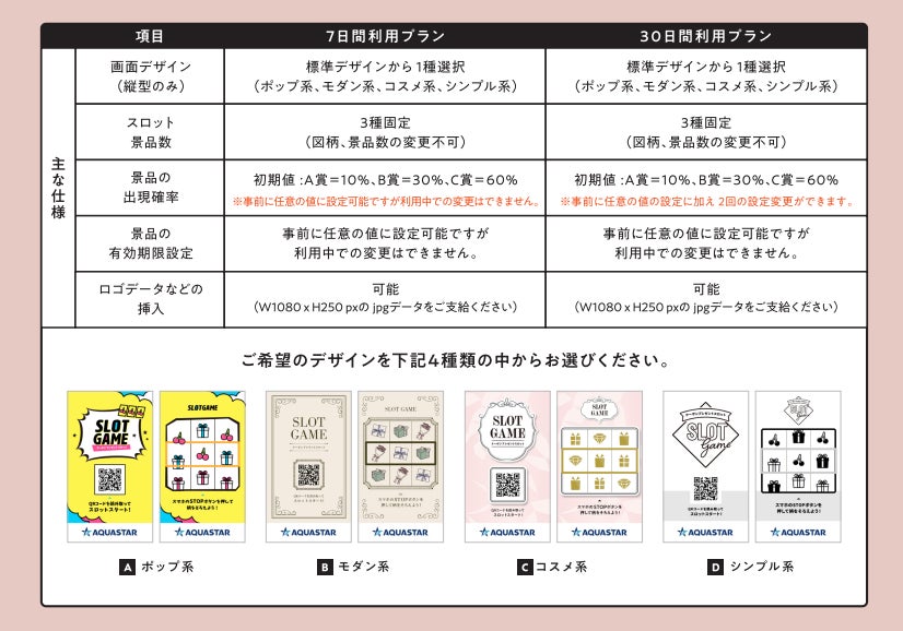 各プランで選べるデザインは4種類展開されているほか、カスタマイズで自社ブランドに合うデザインで実施することも出来ます。