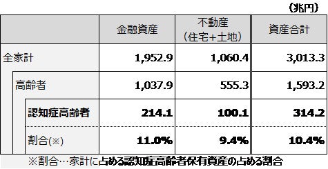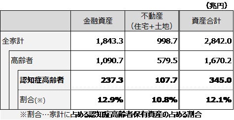 2020年、認知症高齢者が保有する資産は“約250兆円” 高齢化の進展に伴い、2040年には“約345兆円”に