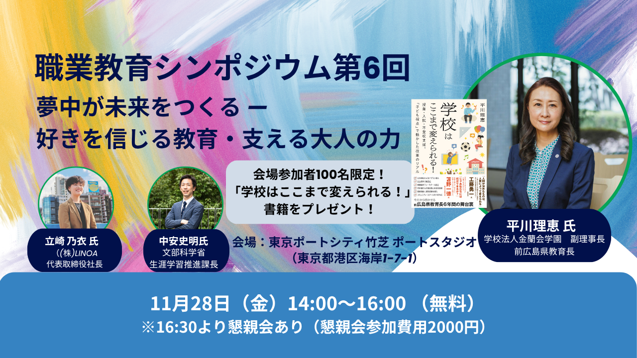 2025年11月28日(金)、CAREERMAP Labo主催(参加費無料)の第6回「職業教育シンポジウム」を開催いたします。