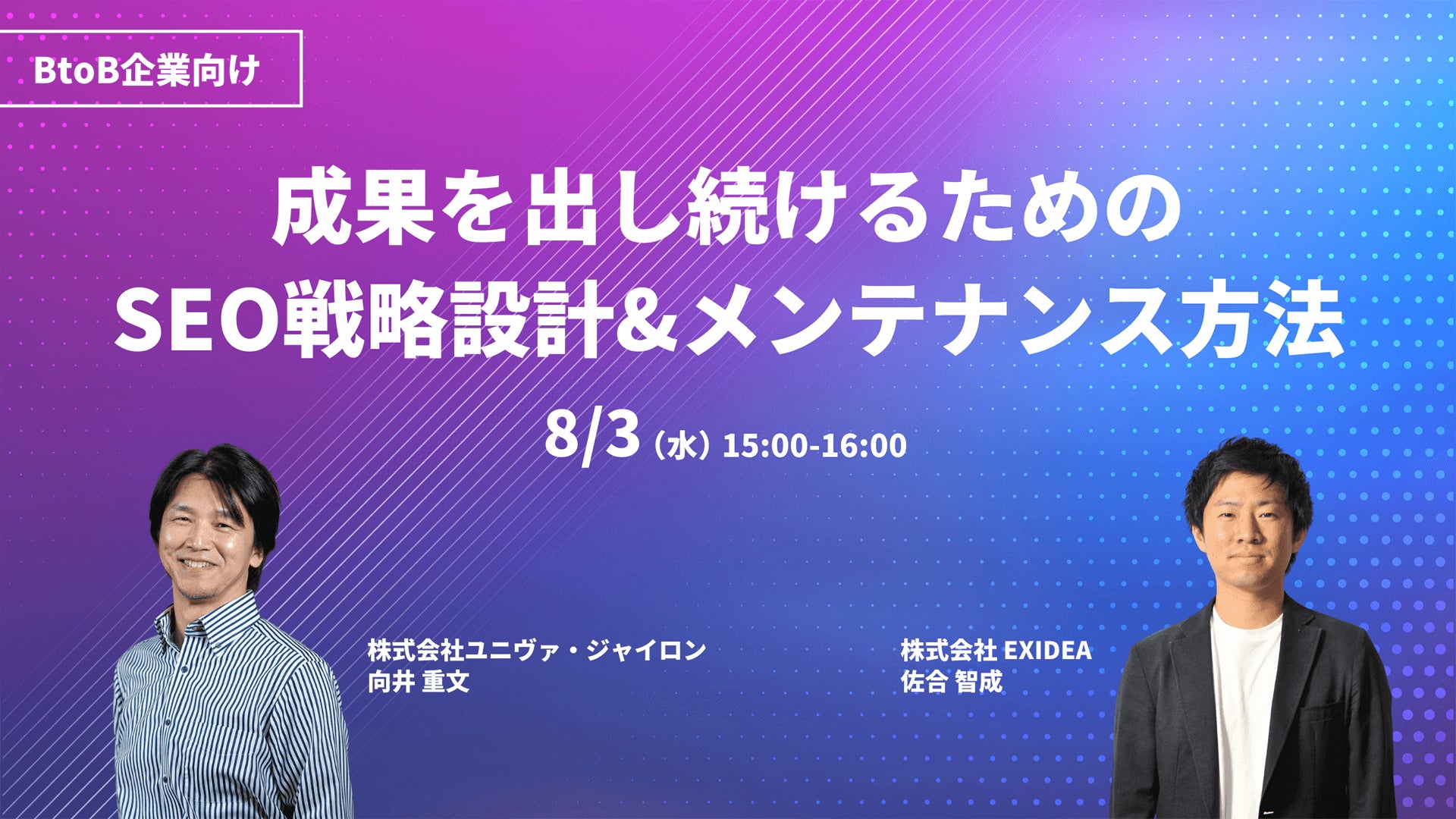 株式会社EXIDEAと株式会社ユニヴァ・ジャイロンによる、BtoB企業向け共催SEOセミナー(8月3日15時)