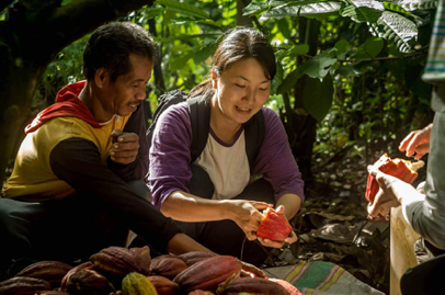 dari Kは京都のチョコレートブランドでありながらも、インドネシア・スラウェシ島に拠点を持ち、カカオの栽培と発酵に携わる原料メーカーです。カカオを農家から買い取り生産者の手取り収入を増やす仕組みづくりや、品質や収穫量を向上させる栽培指導、カカオをバナナなどの他の作物とともに栽培し生物多様性を育むアグロフォレストリーなど、持続的なカカオの生産を目指して生産地に根ざした活動を行っています。