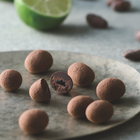 ライム発酵カカオを使用したボタン型のチョコレート。爽やかな香りとなめらかな口どけが特長です。
