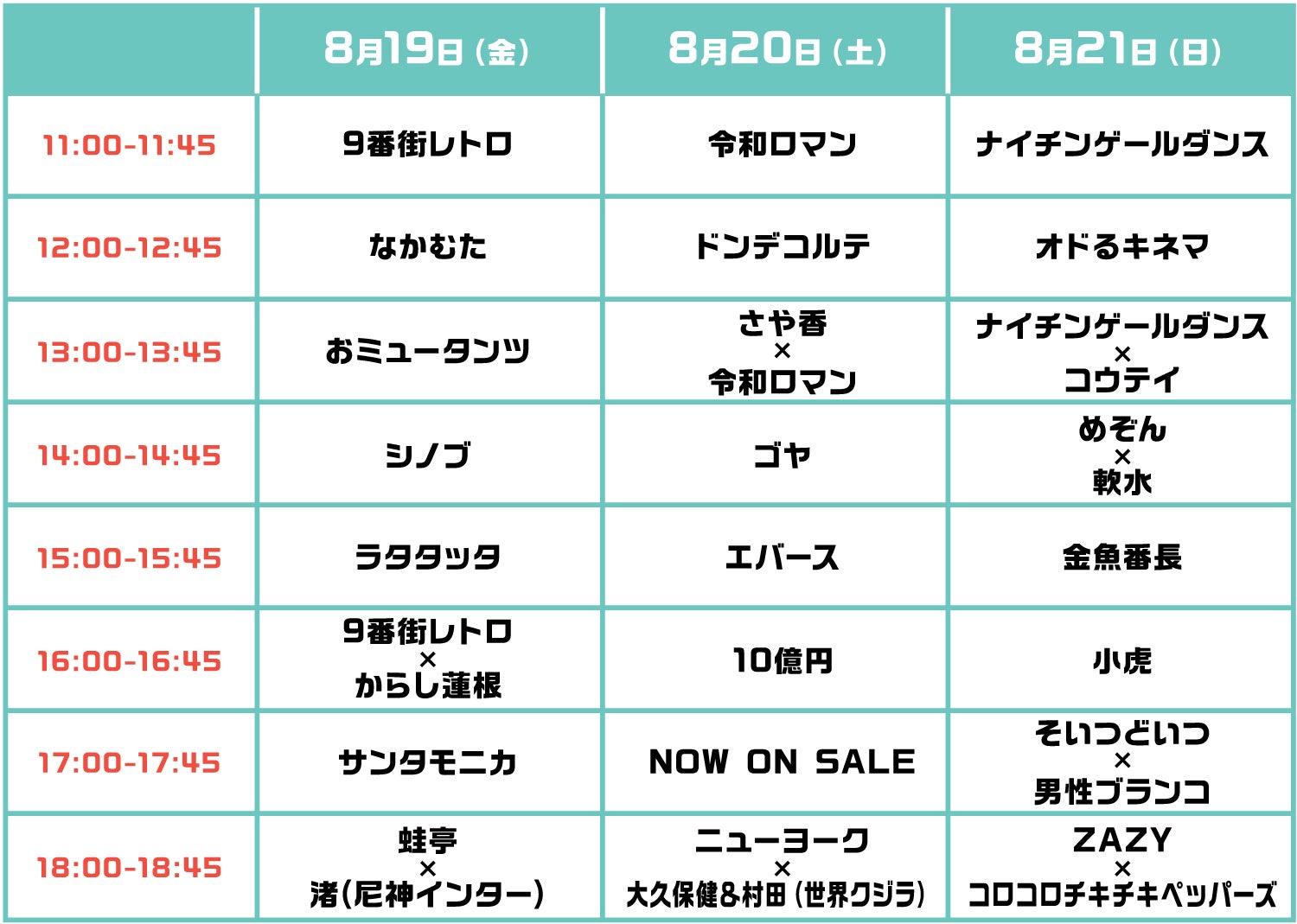 8月19日(金)、20日(土)、21日(日) 毎日11時〜18時45分頃まで生配信
