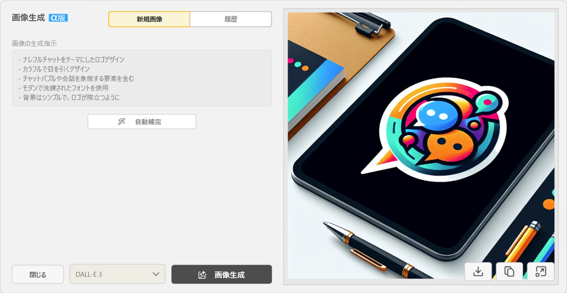 ユーザーの指示内容を補完するサポート機能が含まれた画像生成機能を追加しました。