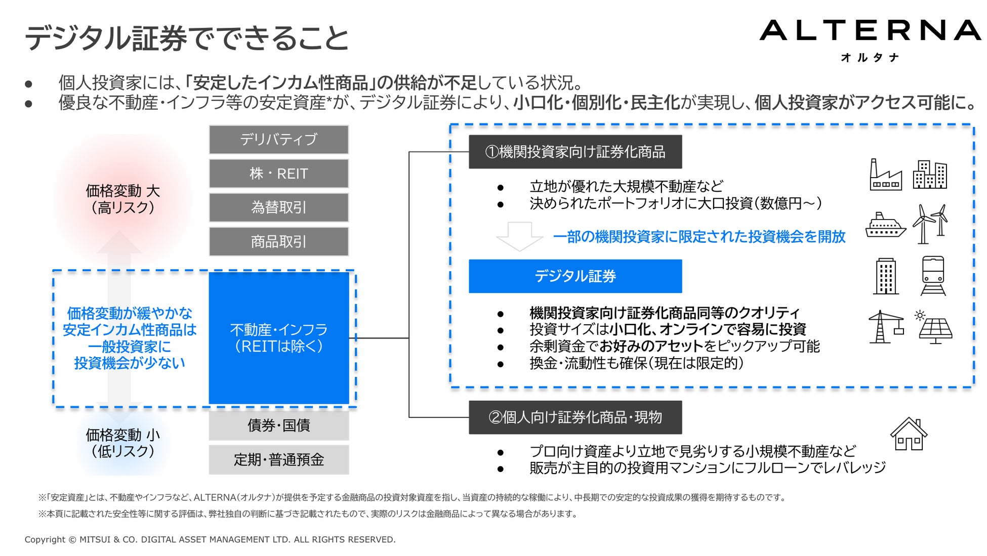 三井物産グループ発、個人投資家の新しい選択肢「ALTERNA(オルタナ)」がサービス開始。デジタル証券(ST)を活用し、「貯蓄から投資へ」を推進