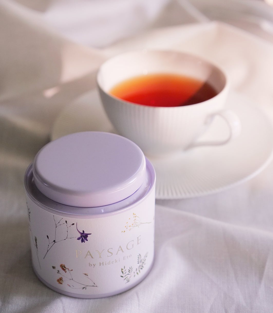 江藤が幼少時を過ごしたロンドンでの、王立植物園の散策や郊外での花と緑にまつわる思い出を受け、 初夏前後の英国の風景や空気感を目指して風味を作り上げています。セイロン、アッサム、ダージリン、キームン、ケニアといった複数産地の茶葉を使用し、PAYSAGEの焼き菓子と相性がよくなるよう、 穏やかながら風味に芯のある、PAYSAGEのイメージそのもののオリジナルブレンド紅茶です。