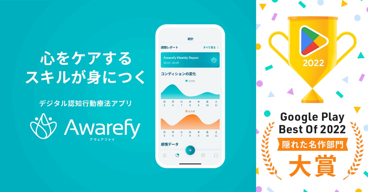 デジタル認知行動療法アプリ「Awarefy」が、Google Play ベストオブ 2022「隠れた名作部門」で大賞を受賞いたしました。