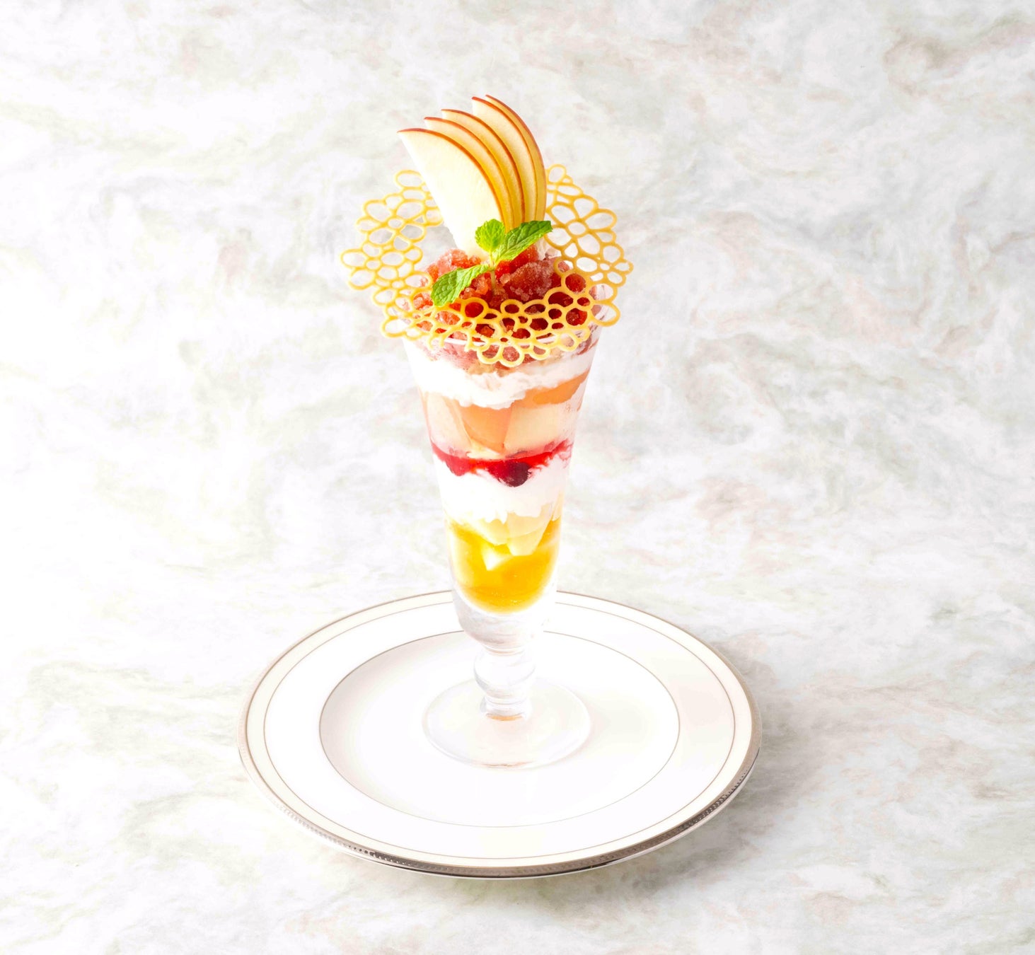 冬のリンゴとザクロのパフェ 単品 税込1,540円、 ドリンクセット 税込1,980円