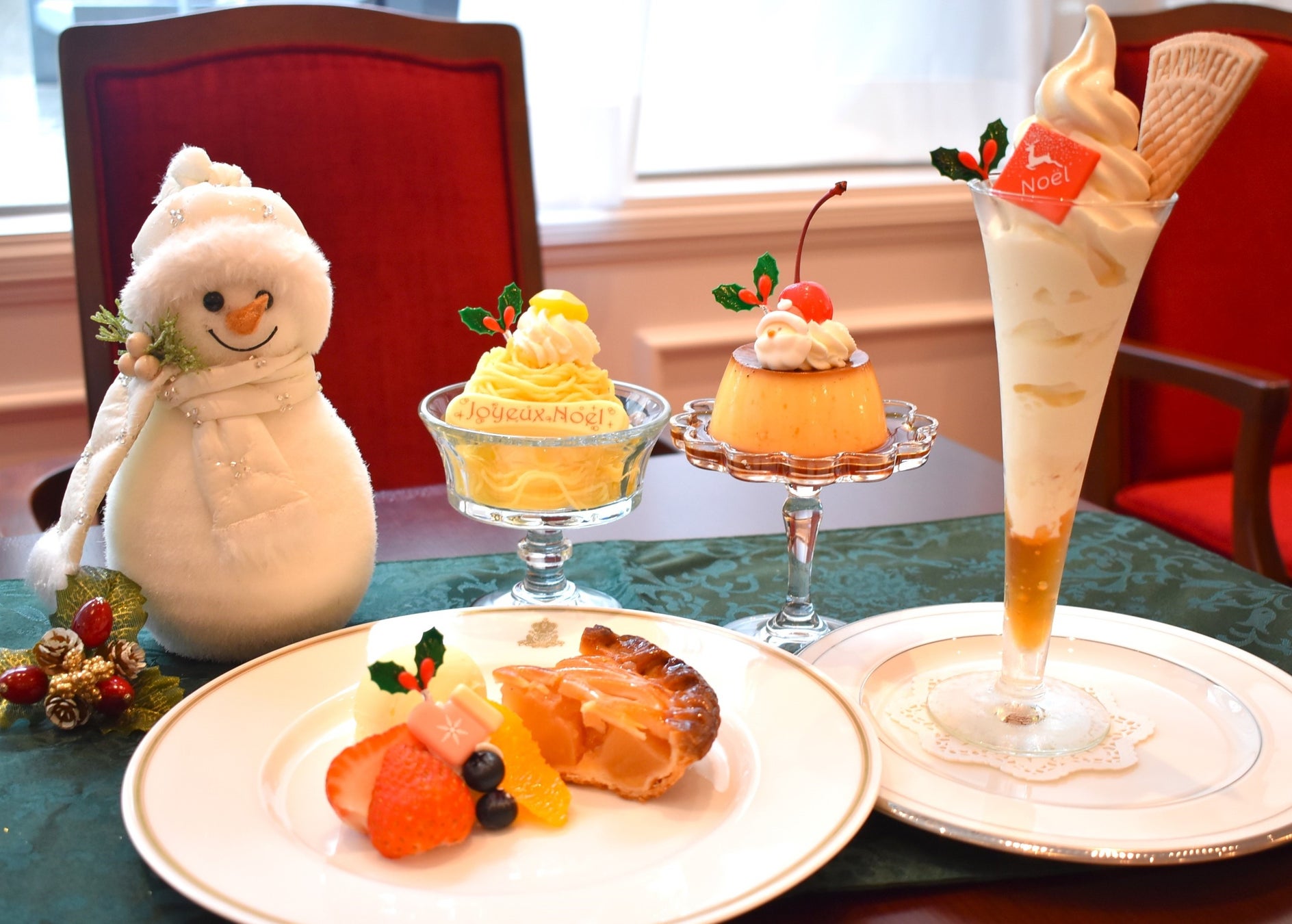 コロンバン原宿サロンのクリスマスデザート 華やかなアフタヌーンティーセットや、リンゴとザクロのパフェが登場