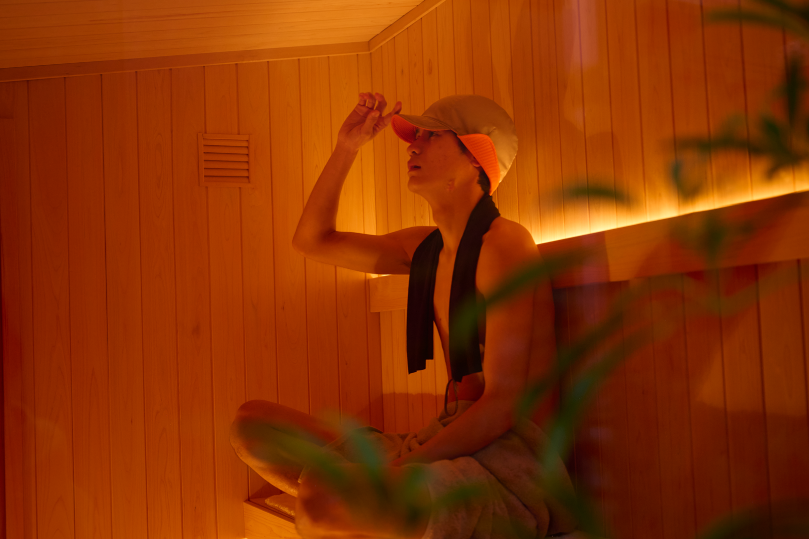 Unplugのサウナハットには、アウフグースを存分に楽しむためのタオルホルダーなど、体への負担を減らす快適装備が盛りだくさん。熱くて息苦しくなることなく、リラックスした心地よいサウナ体験を満喫できます。