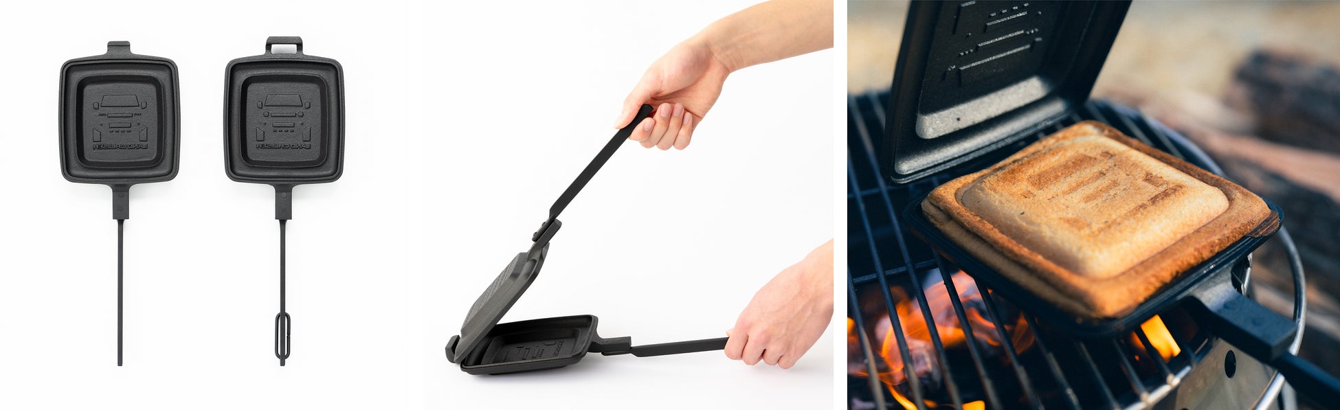創業から150年以上にわたって鉄器を作り続けている老舗の「及源鋳造」と製作した、無骨ながら美しい佇まいの南部鉄器製ホットサンドクッカー。焼面にランドクルーザーのオリジナルデザインが浮かび上がる。