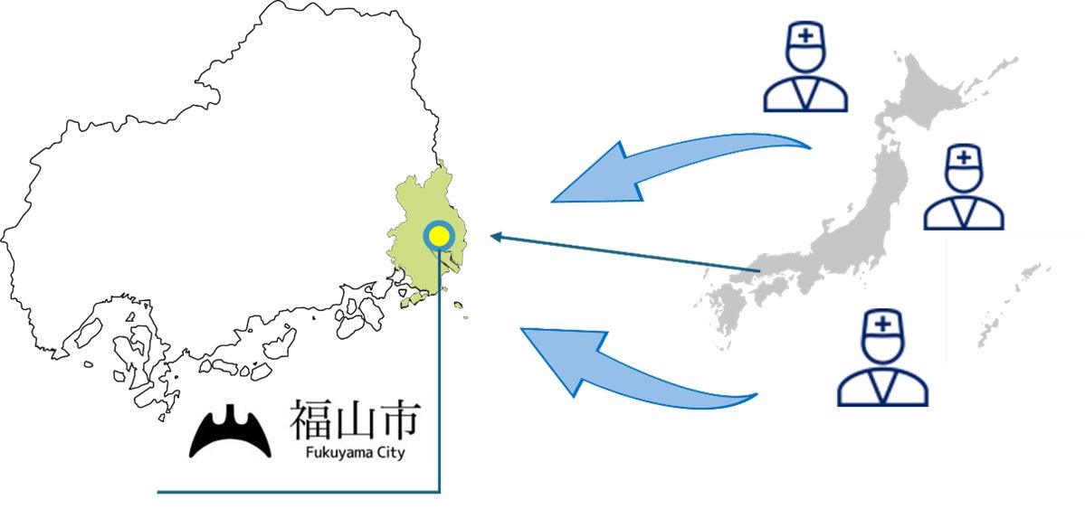 3期目となる今回は、2期までの実績を踏まえ、勤務体制や観光にさらなる改善を加え、協力医師に福山市の魅力を知っていただき、協力医師が福山市へ移住し地域の医療機関で働くことを検討できる体制を目指してまいります。