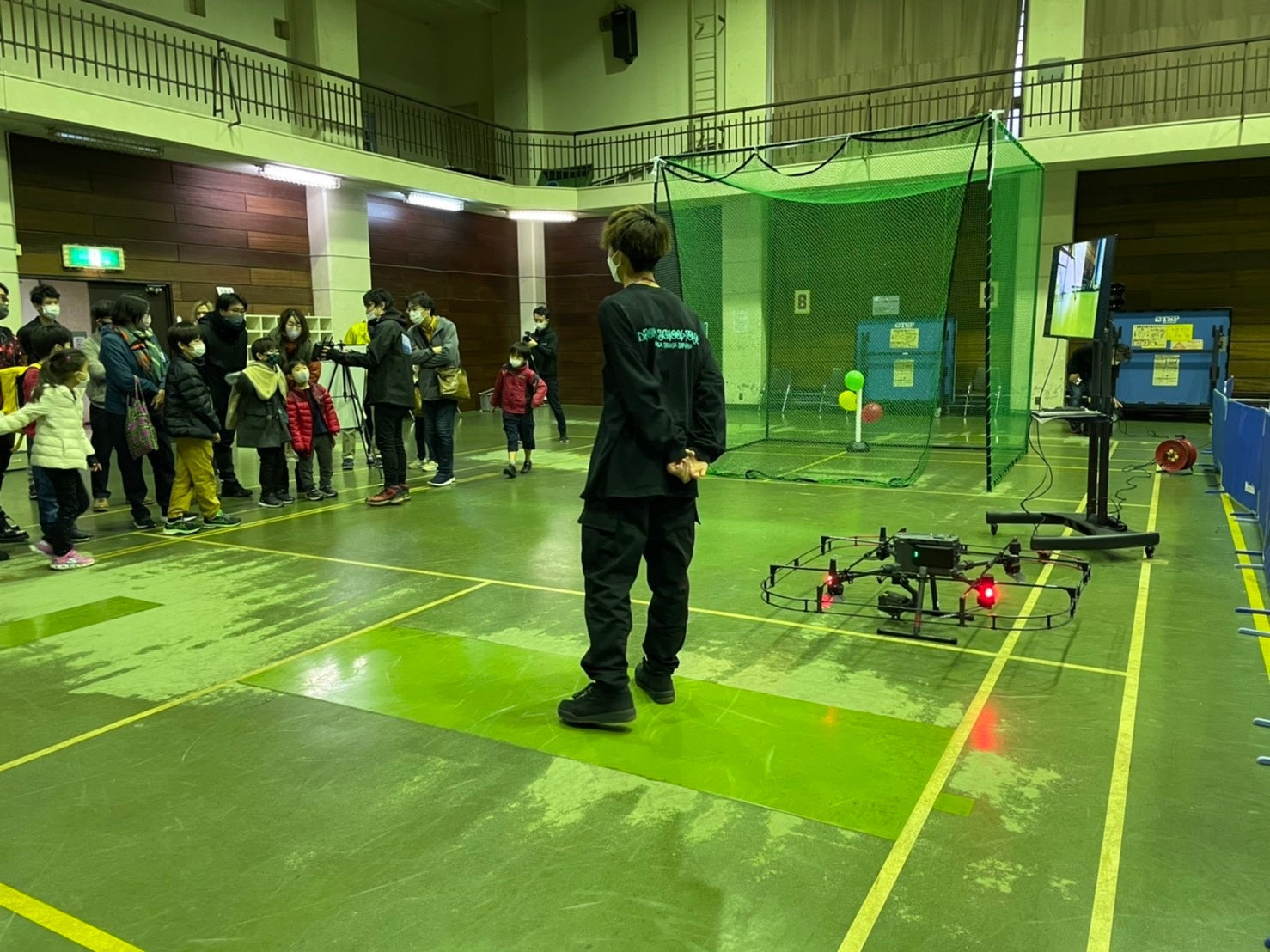 プログラミング教室では渋谷区勤労者福祉振興公社(渋谷きんぷく)の体育館を利用します。 非常に大きなスペースのため、安全にドローンを飛行させることが可能です。