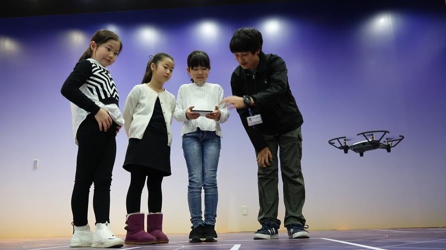 また、小中学生を対象にした「ドローンプログミング教室」を2018年から開催しており、これまで数百名以上の生徒にドローンを通じたプログラミングの教育を実施。