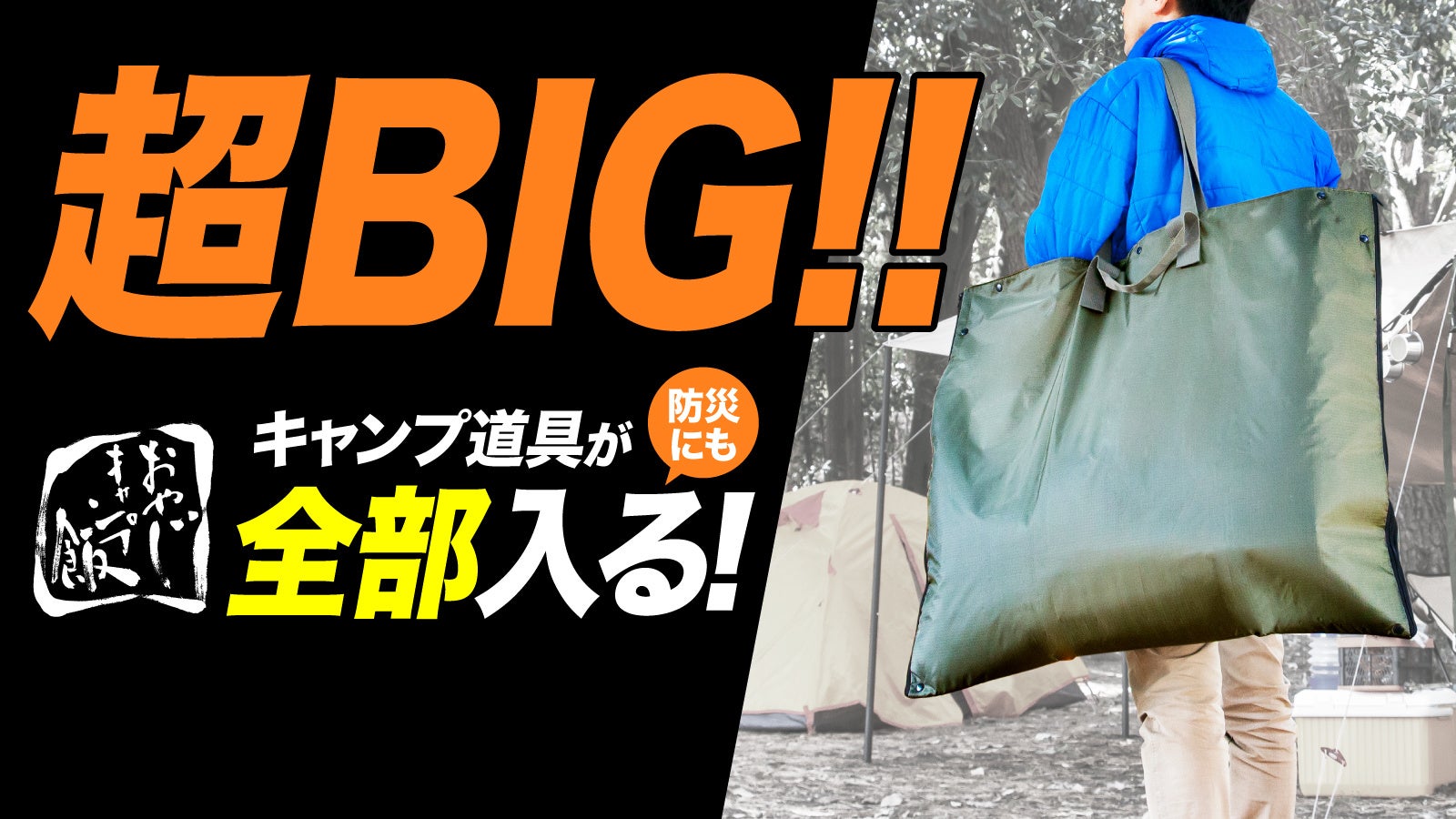 新発想の超ビッグバッグにはソロキャンプの用品が(一式全て)入り持ち運びが可能です。
