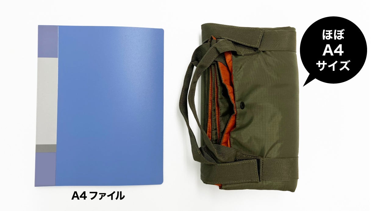 折り畳むとA4サイズとほぼ同じ大きさに。ポリエステルだからシワになりにくい。