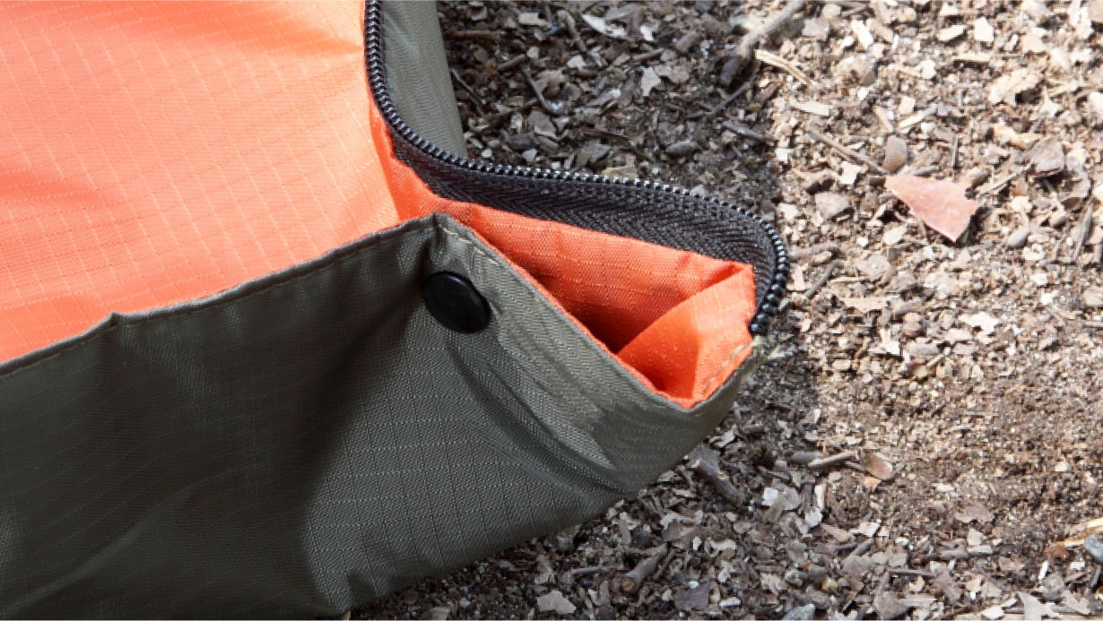 ビッグバッグをファスナーで展開する事により大人2人が座れるサイズのレジャーシートにも早変わり!