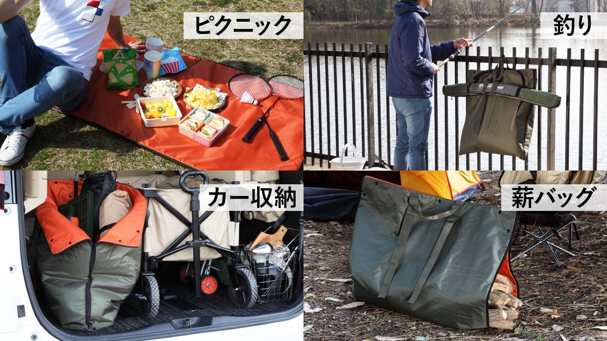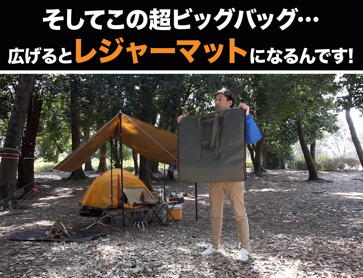 【新発想】キャンプ用品一式がまとめて入る超ビッグバッグがレジャーシートに変身!アウトドアや防災グッズとしてもあったら便利なグッズが登場