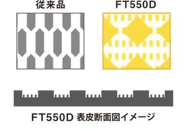グリップ性を向上させるため、表面のエンボス形状を一新しました。