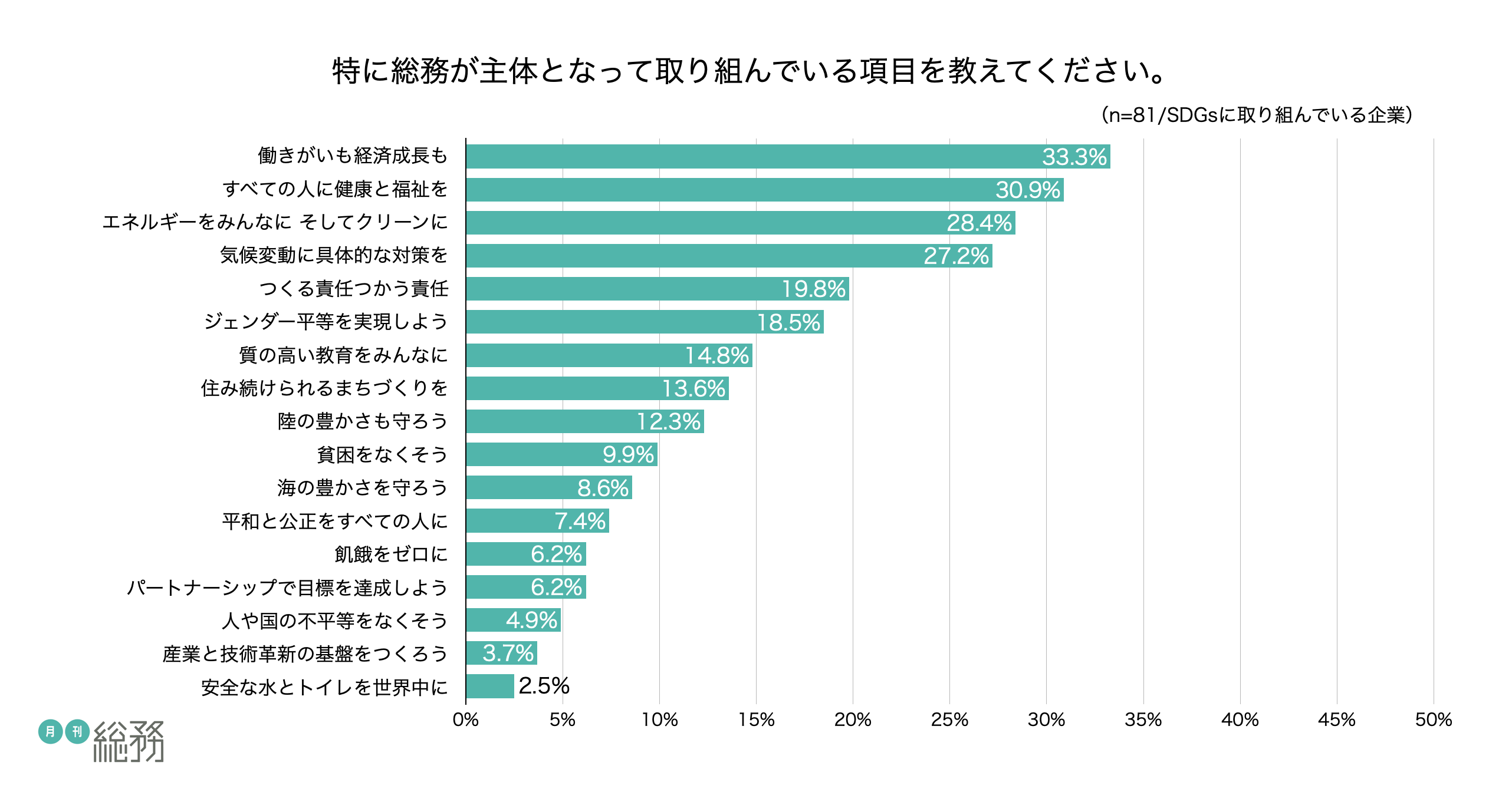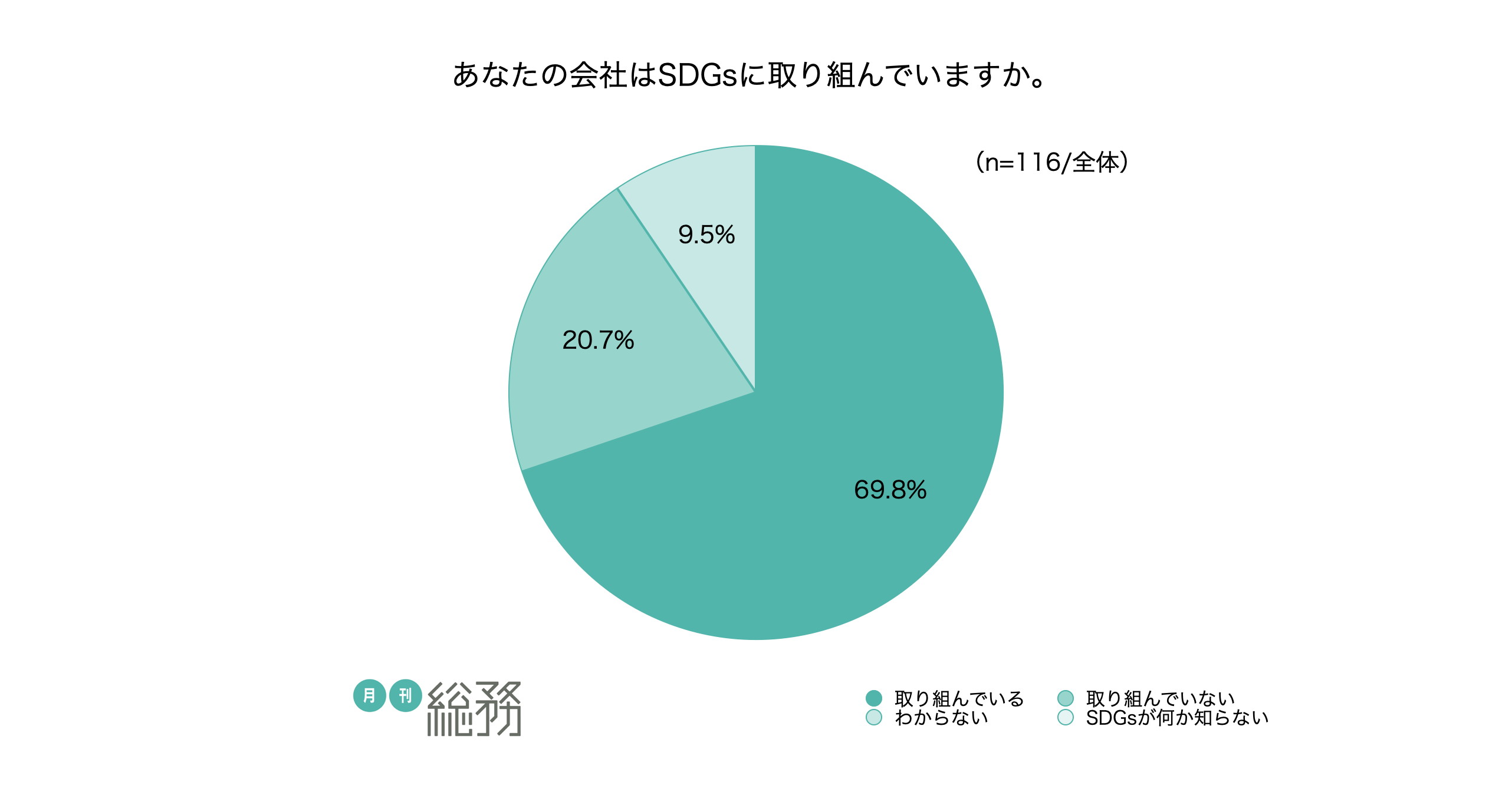 日本で唯一の総務専門誌『月刊総務』を発行する株式会社月刊総務(所在地:東京都千代田区、代表取締役:豊田健一)は、全国の総務担当者を対象に「SDGsについての調査」を実施し、116名から回答を得ました。