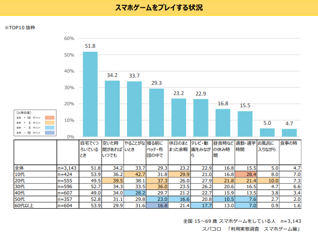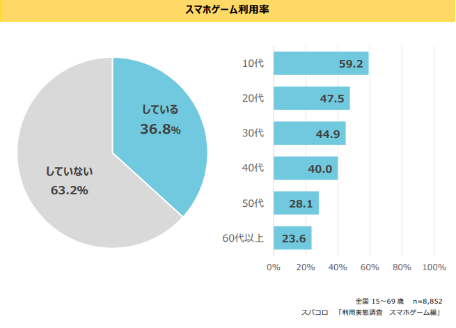 ロイヤル顧客の反応可視化ツールを提供する株式会社スパコロ(本社:東京都港区、代表取締役社長:林 秀紀)は、全国15~69歳8,852名を対象に実施した「利用実態調査 スマホゲーム編」の結果をご報告いたします。