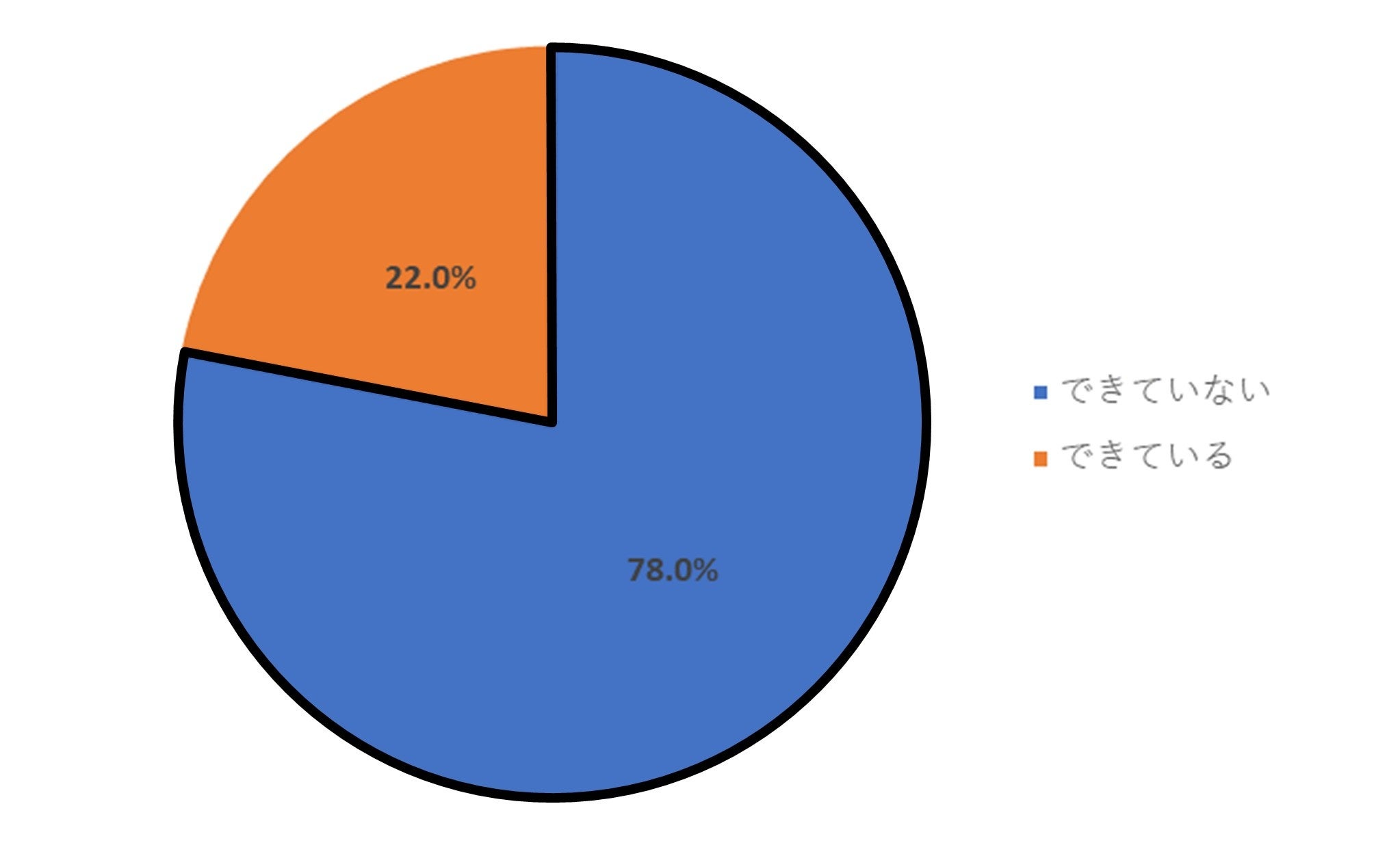 物価高の高騰に伴う価格転嫁の実施状況については、全体の78.0%が「できていない」ということが明らかになり、中小/零細企業における価格転嫁は難航していることが判明。価格転嫁が「できている」の回答は22.0%であった。