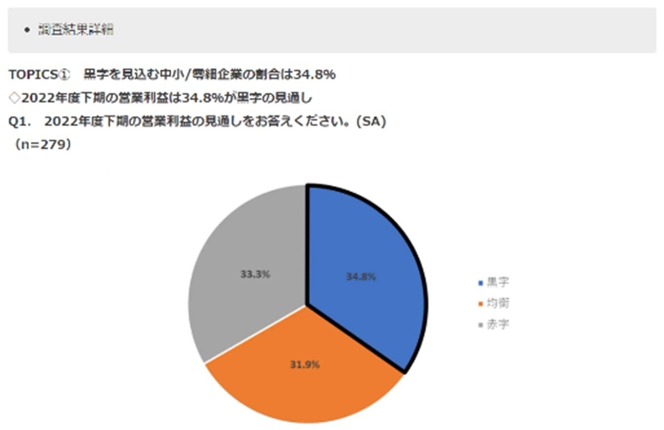 黒字を見込む中小零細企業が34.8%、一方で赤字も33.3%