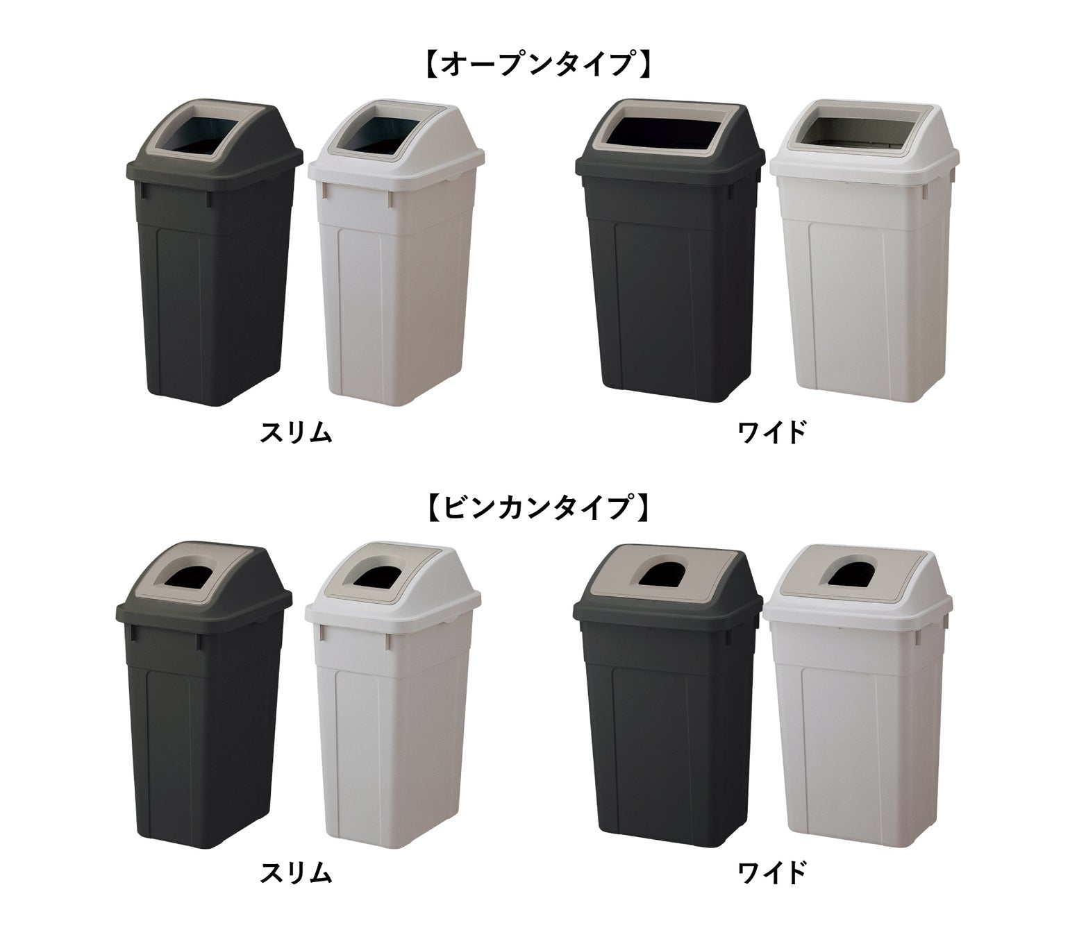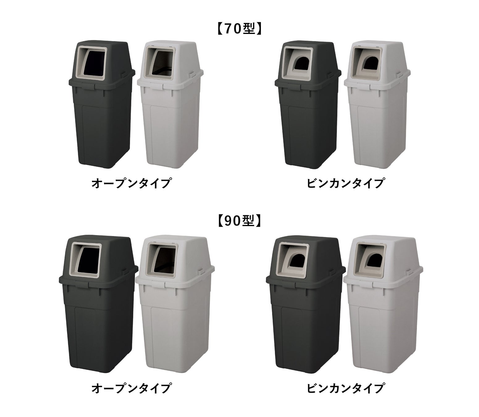 捨てるゴミの種類に合わせてフタが選べるダストボックス。捨て口が広く様々なゴミに対応できるオープンタイプと、ビンカン用に適した半円状の捨て口のビンカンタイプがあります。