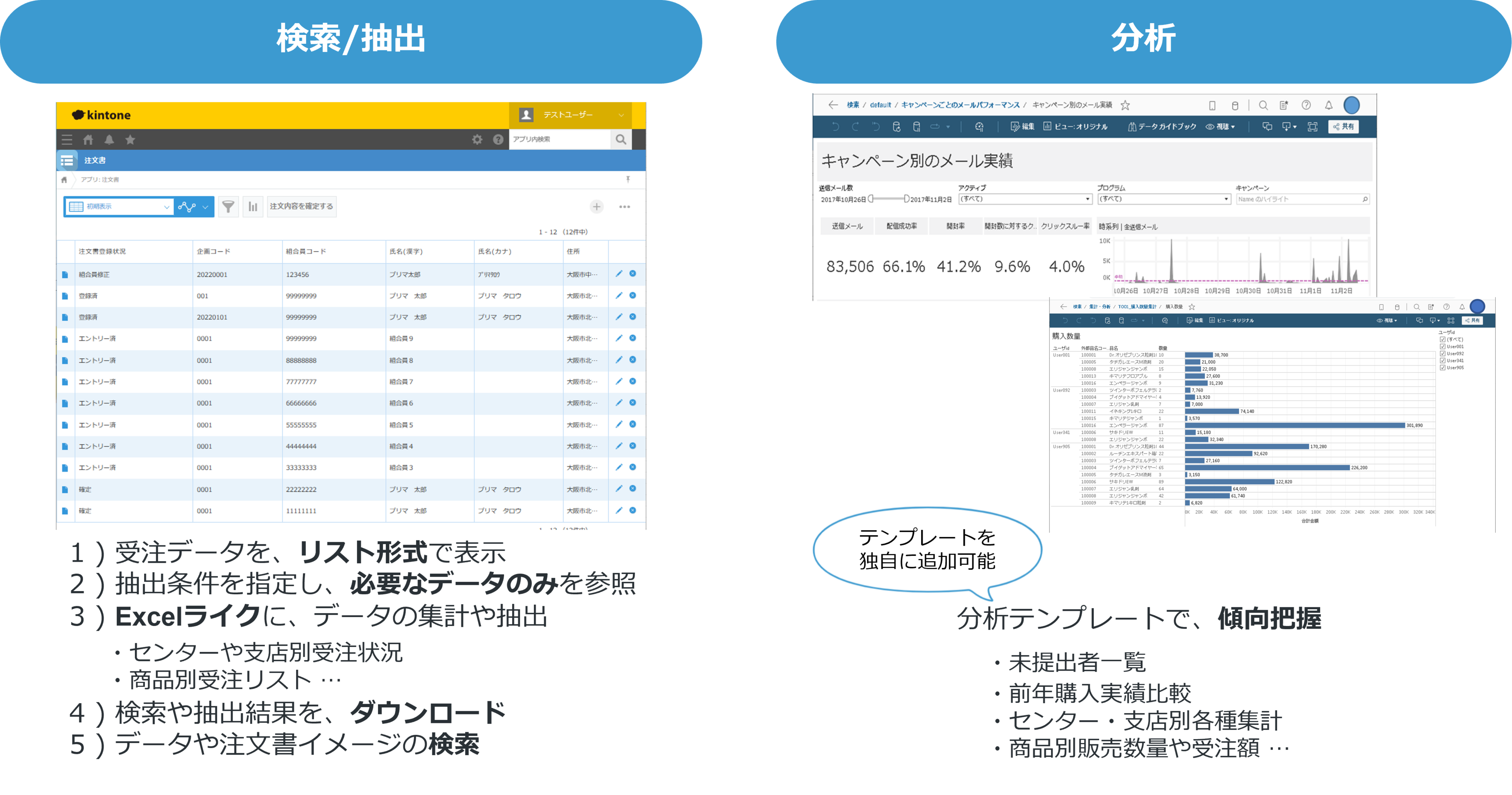 登録された注文データはブラウザを使用することで、検索・抽出することが可能となり、迅速かつ容易に注文状況の把握を行うことができます。