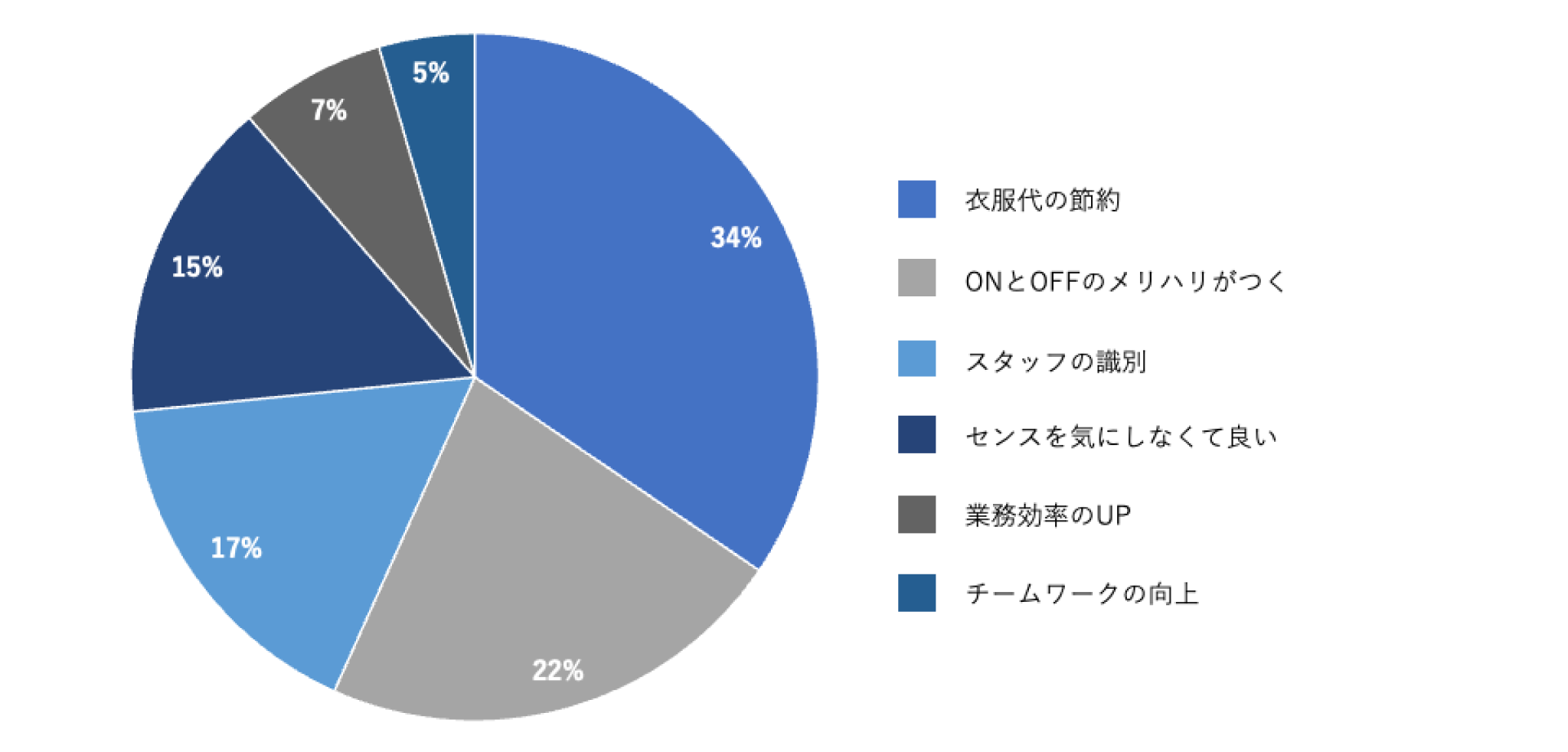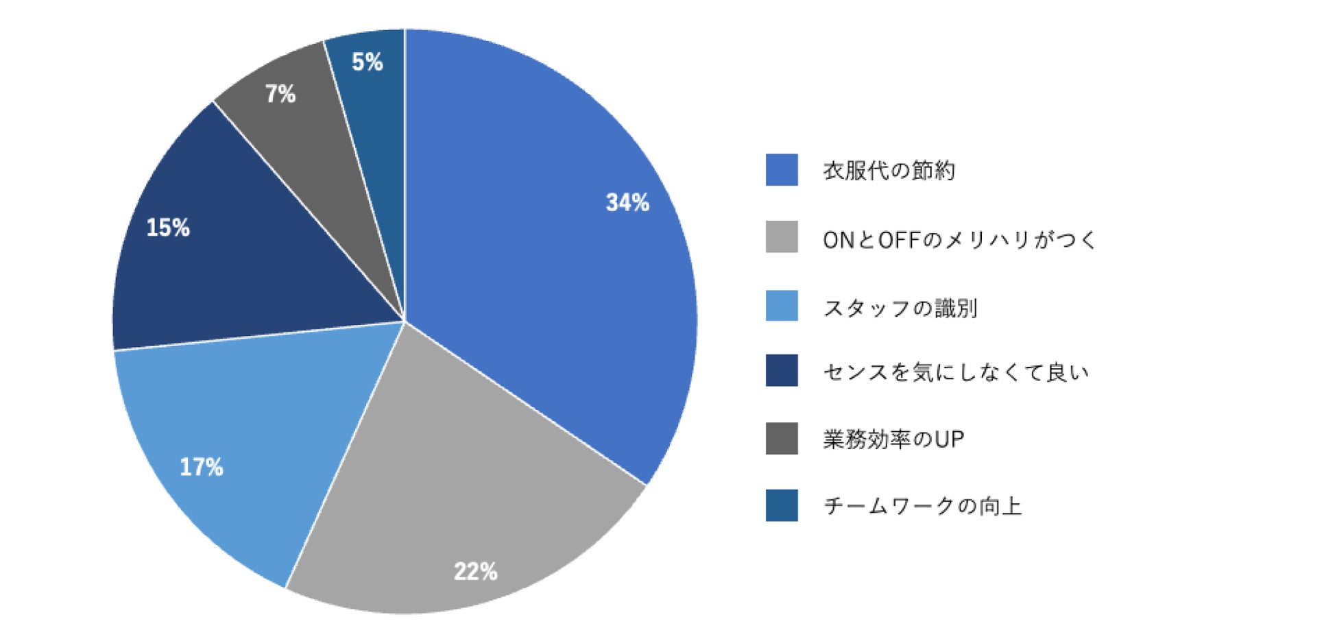 また、「服装のセンスを気にしなくてよい」という声があるように、服装に対する周囲からの指摘や評価、いわゆる“服装ハラスメント”の防止にも寄与していることが分かりました。