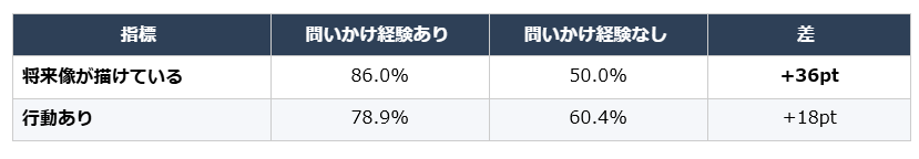Finding 3:上司の問いかけが将来像形成と行動を後押し──しかし経験率はわずか24%