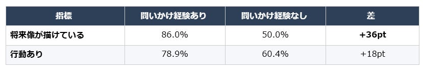 行動の有無と最も強い関連を示したのは、将来像の明確度でした。
