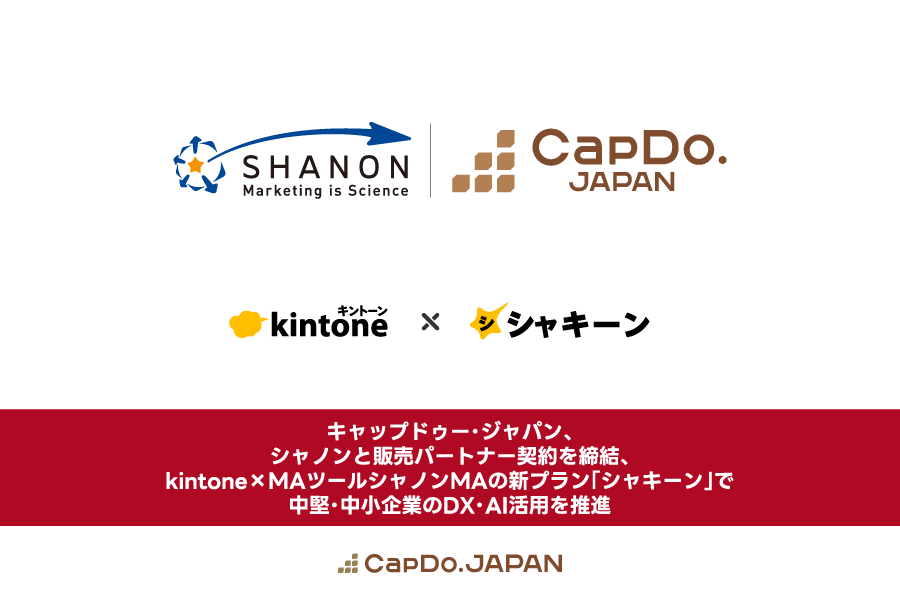 キャップドゥー・ジャパン、シャノンと販売パートナー契約を締結、kintone×MAツール シャノンMAの新プラン「シャキーン」で中堅・中小企業のDX・AI活用を推進