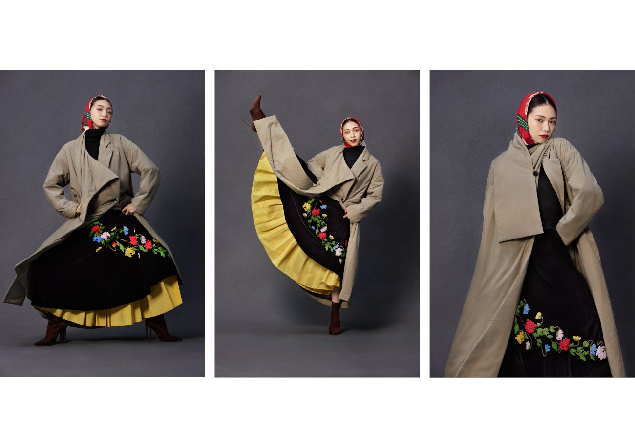 大量生産・大量廃棄を繰り返すファッション業界の課題に対し、KAPOK KNOTはサステナブルな素材を活用しながら、トレンドに囚われず長く着用してもらえる「タイムレスなデザイン」を大切にしています。その想いから、今回のコラボでは世界のファッションを「アウター」に落とし込み、サステナブル新素材のカポックを使って再現した、全3型を共同制作しました。