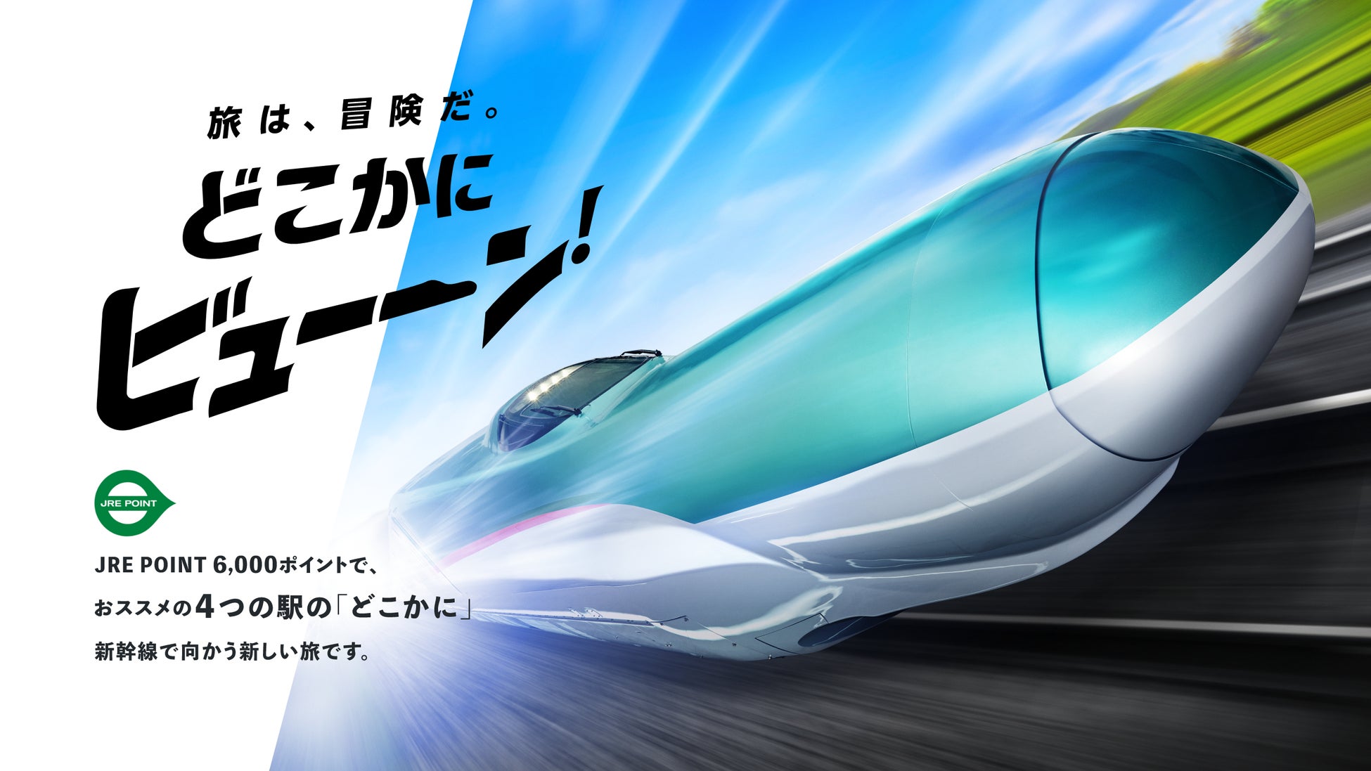 どこかにビューーン!は、JR東日本がおすすめする新幹線停車駅の中から「どこかに」行ける新しいサービスです。お客さまが旅程情報を入力すると、4つの行き先候補駅が表示されます。好みの組み合わせが表示されたら、JRE POINT6,000ポイントを利用して申し込みいただき、最終的な行き先は、申込から3日以内に案内されます。