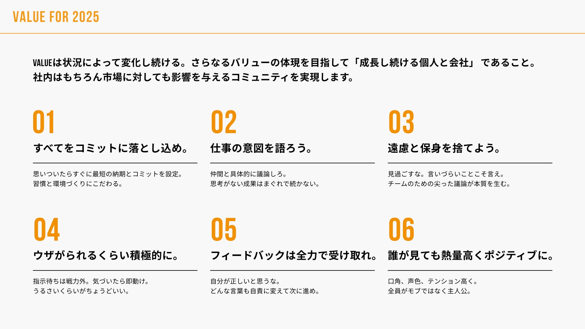 加えて、SNSが社会インフラとなった現代では、トレンドの変化が更に速くなっています。このような状況下で、メンバーが成長と活躍を果たし、しいてはナハトが市場で勝ち続けるためには、常に変化に対応し進み続けるといった価値観を持つことが不可欠であると考えています。