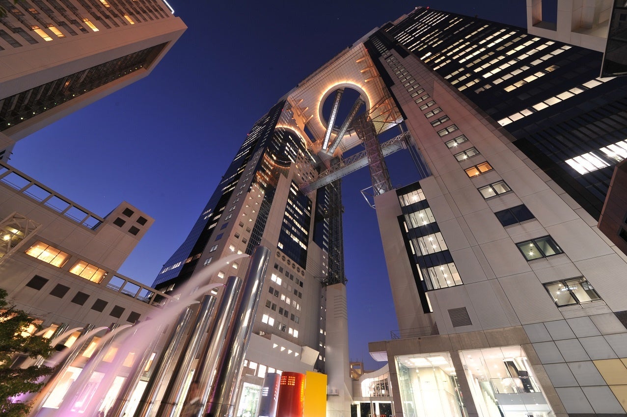 梅田スカイビルは、2つのビルが屋上を含む上層部「空中庭園」でつながる独特のフォルムの連結超高層ビル。