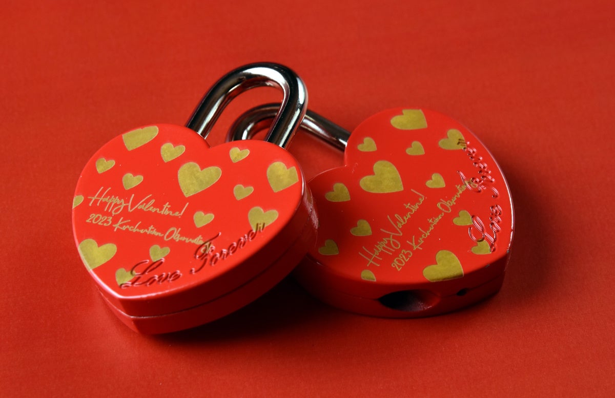 お二人の名前と記念日を刻印できる「ハートロック」に、バレンタイン限定デザインがレッドで登場。