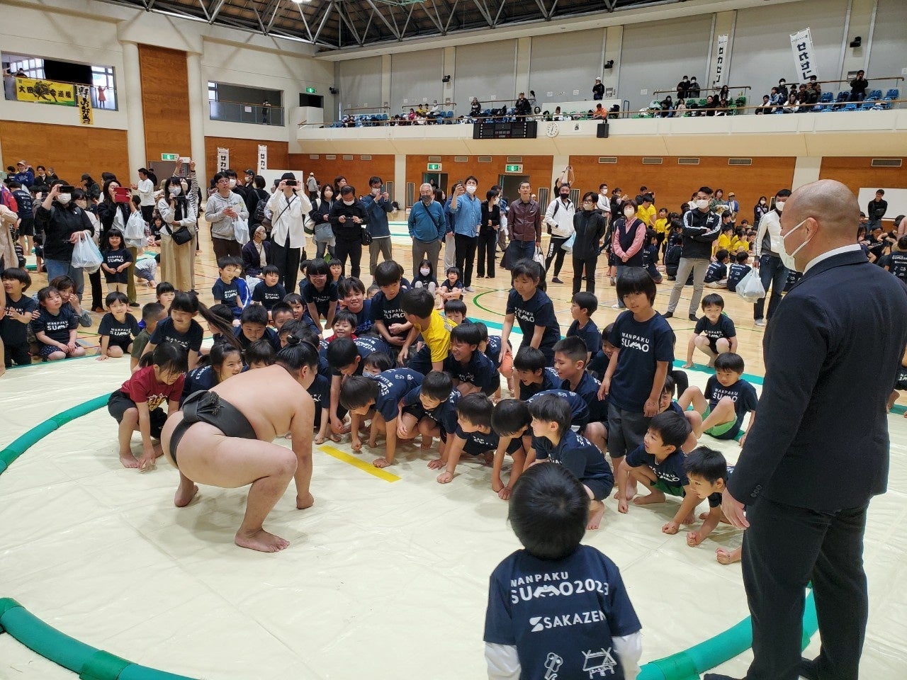 『#全ての人に楽しさと幸せを』を掲げる坂善商事株式会社(本社 東京都中央区/代表取締役社長 村上隆司)は2023年4月22日(土)に大田区大森スポーツセンターアリーナで行われた第47回わんぱく相撲大田区大会「勇気・礼節・感謝」~心にいつもわんぱくピース~に協賛しました。参加者にサカゼンオリジナルTシャツを無料配布するなど大会を一緒に盛り上げました。サカゼンは今後もわんぱく相撲を応援していきます。